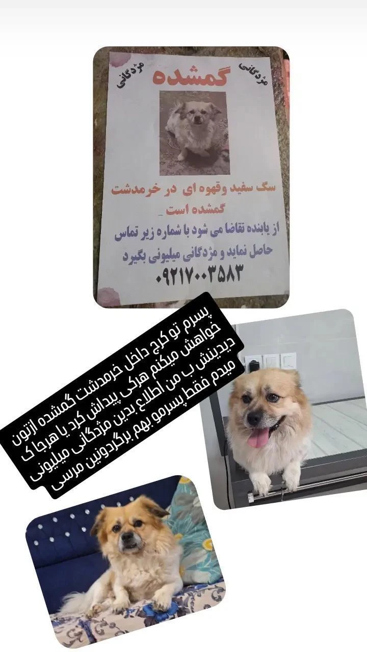 سگم جمعه شب توی خرمدشت کرج گمشده توروخدا اگه کسی دیدتش بهم اطلاع بده مژدگانی خوبی میدم فقط پسرمو بهم برگردونید خواهش میکنم